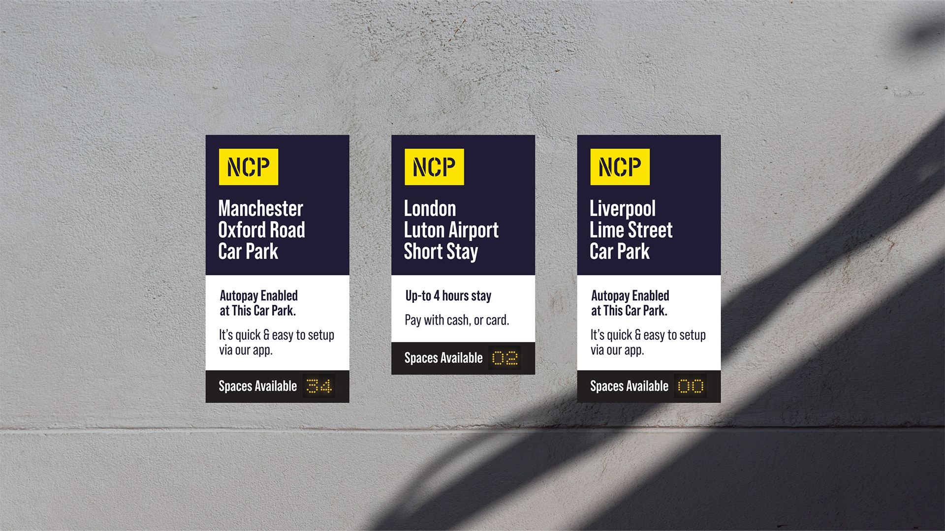 National Car Parks (NCP), known as the UK's premier car park service provider, is the focus of this design study aiming to explore potential avenues for refreshing its brand identity. With operations extending nationwide, NCP's marketing approach predominantly revolves around digital platforms such as its app, website, and social media channels. In this endeavour, the focus lies on digital design to ensure alignment with modern trends and user preferences, prompting a reassessment of NCP's visual identity. While the project aims to introduce subtle updates to NCP's iconic yellow hue, the overarching goal remains to maintain recognisability while embracing a fresh, contemporary aesthetic.